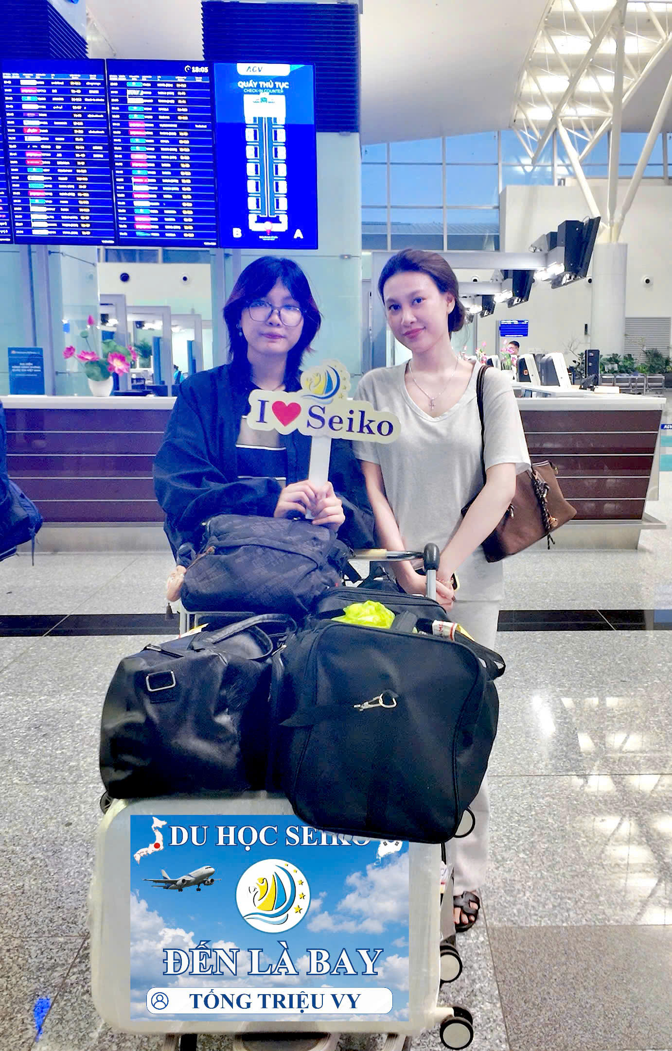 Có những chuyến đi không chỉ là thay đổi địa lý, mà là bước ngoặt thay đổi cả một đời người. Hôm nay, tại sảnh sân bay rộn ràng, gia đình Seiko lại bồi hồi tiễn thêm một "đóa hoa" nhỏ cất cánh bay xa – Chúc mừng bạn học viên Tống Triệu Vy chính thức đặt chân tới Xứ sở Phù Tang! 🌸